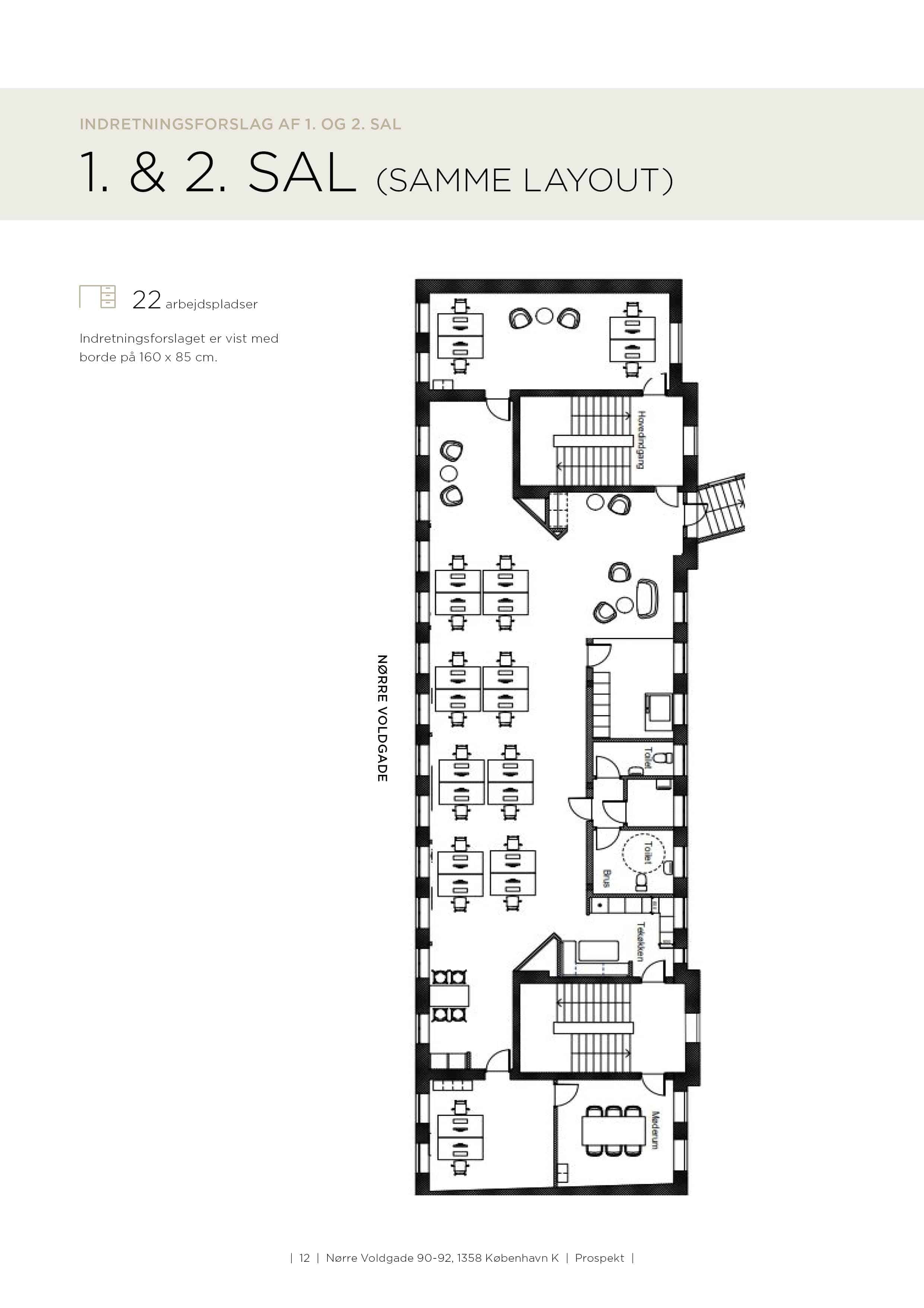 På Nørre Voldgade 90-92, lige ved Nørreport St., udbydes nu ledige kontorer på i alt 803 m² fordelt på to etager. 1. sal udgør 399 m², mens 2. sal udgør 404 m². Der er mulighed for at leje etagerne for sig eller som ét samlet lejemål.