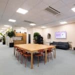 The property offers a wide range of shared facilities and consists of two buildings connected by a shared atrium, featuring a lounge area, meeting centre, and canteen with access to a terrace and courtyard. In the basement, there is a fitness room and sports facilities. The property’s common areas are slated for a comprehensive upgrade.