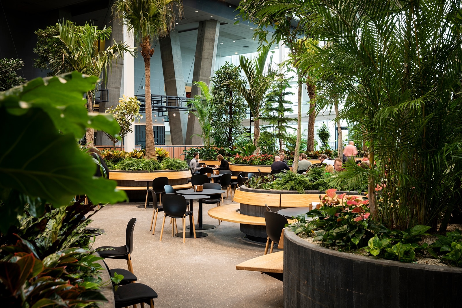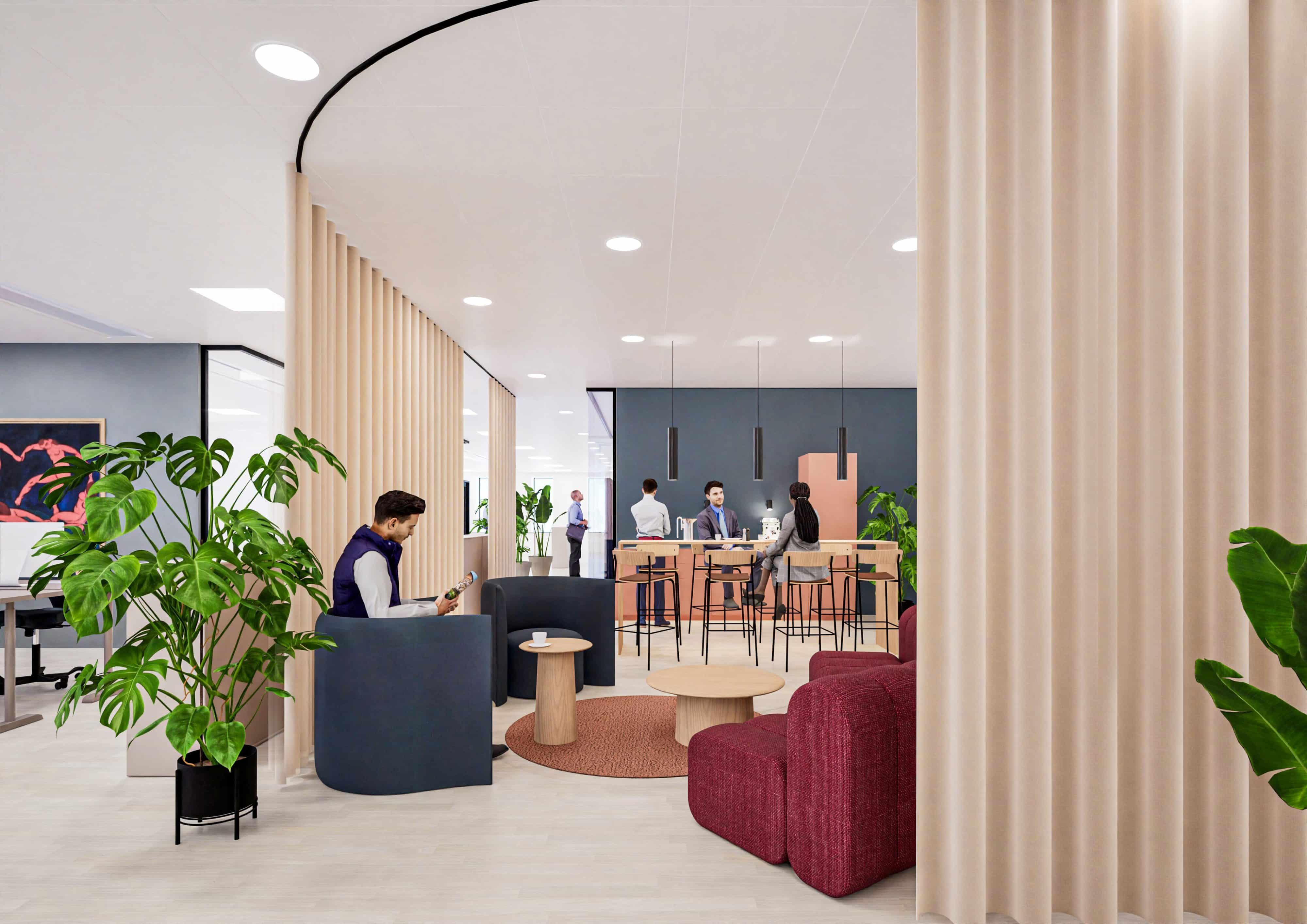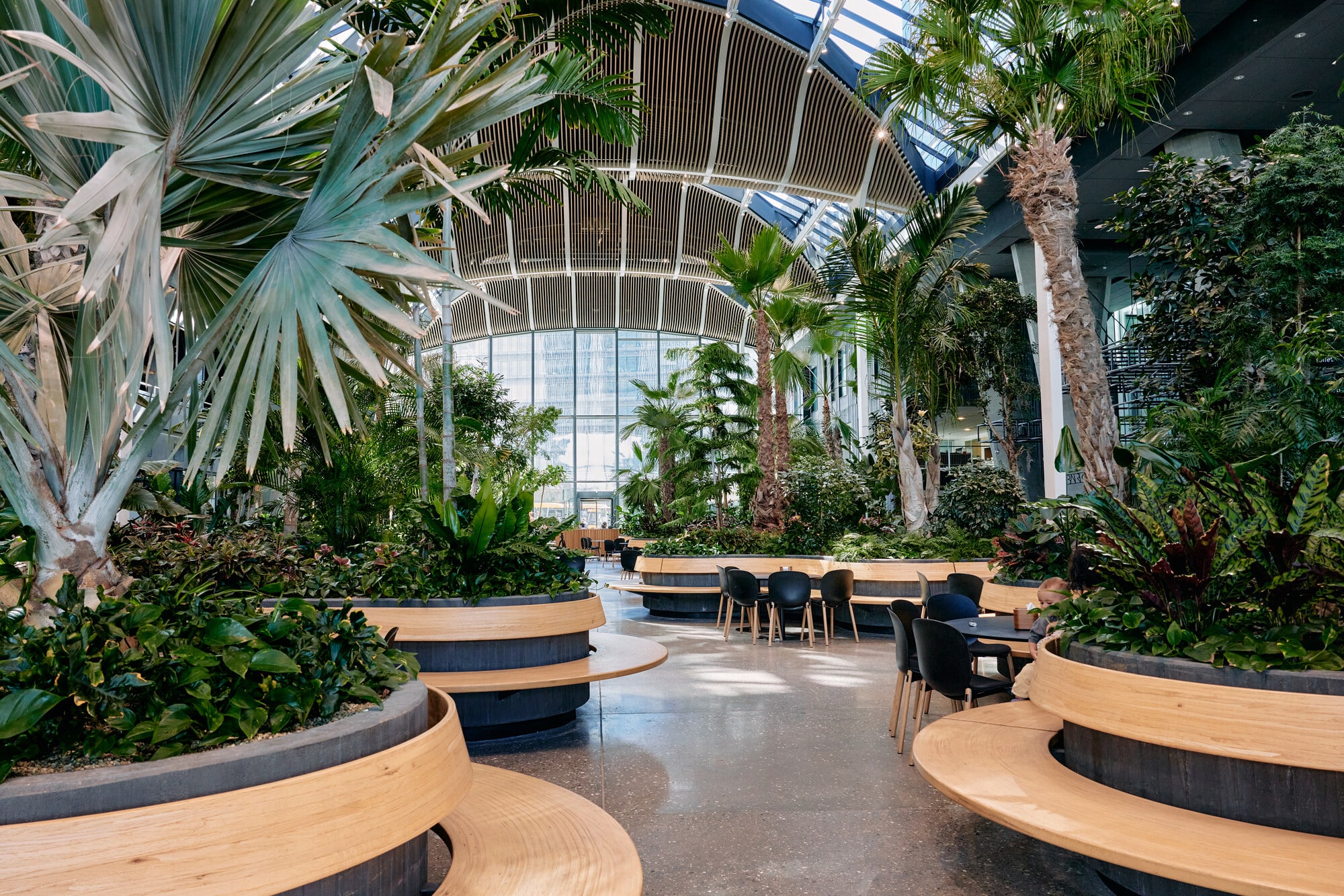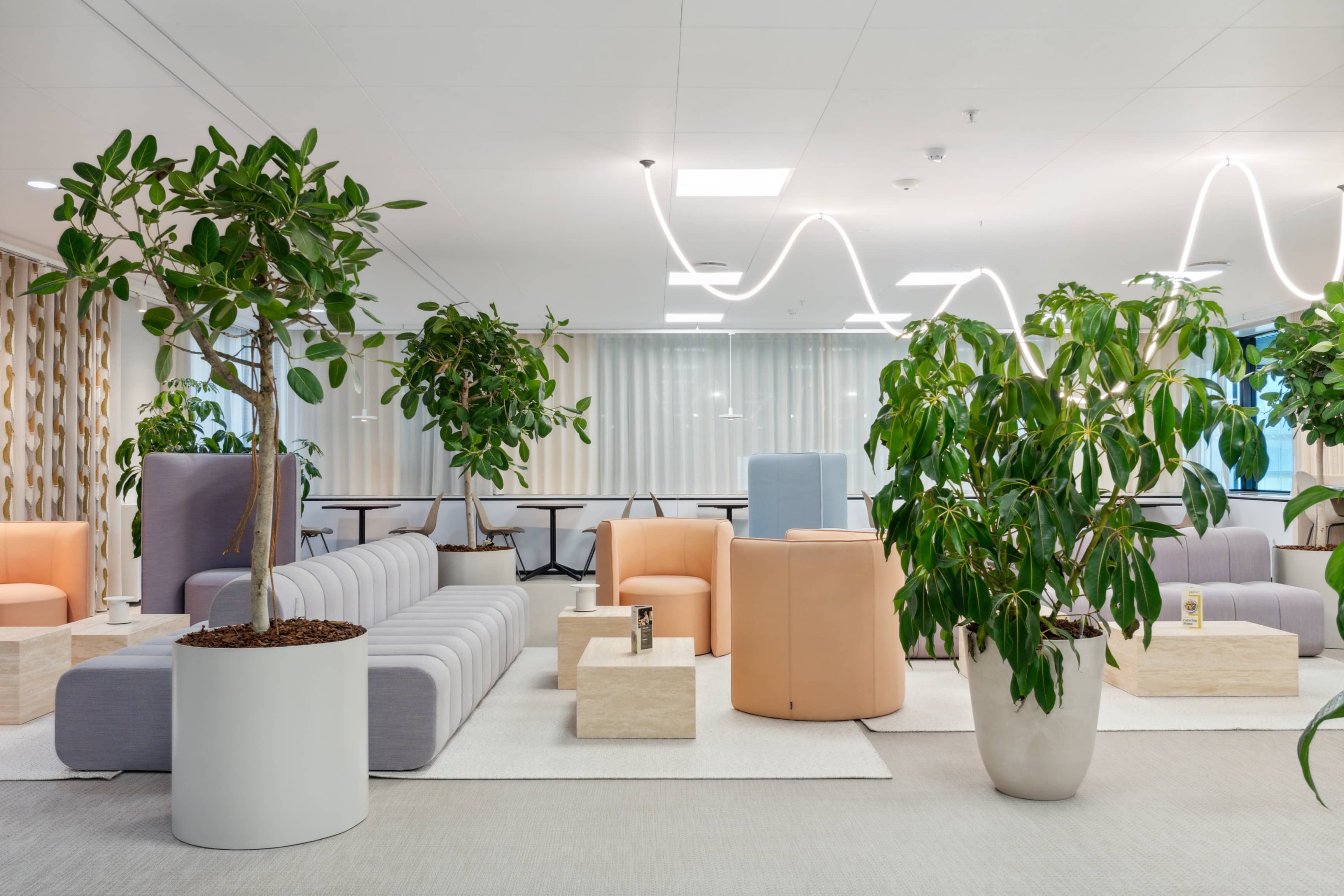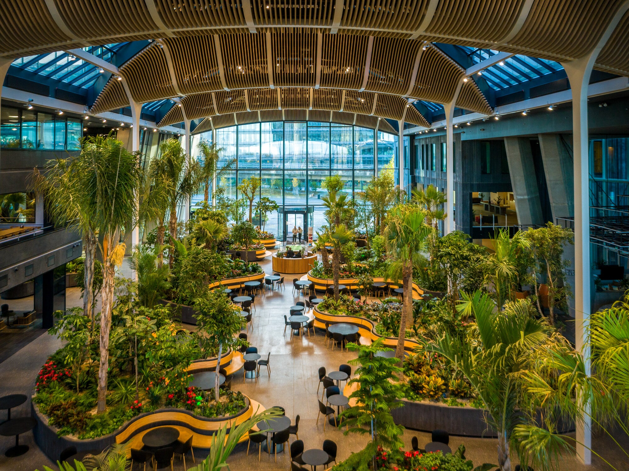 The building welcomes visitors through an inspiring atrium with a beautifully landscaped green oasis, creating a calm and inviting atmosphere that connects the two towers. Tenants also enjoy access to a wide range of attractive services and facilities, including a staff restaurant, changing and shower facilities, reception services, a meeting centre, fitness area, as well as a hotel, bar, lounge, and café.