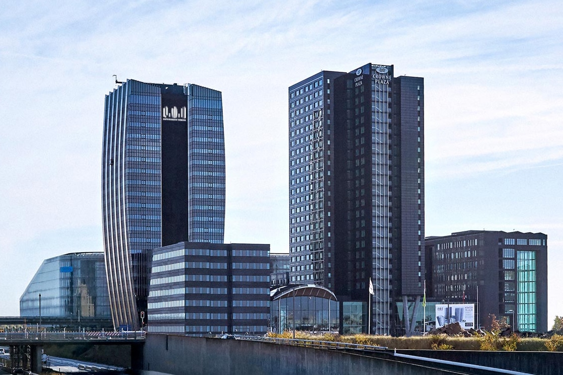 Copenhagen Towers is a certified, architect-designed multi-tenant building located in the heart of Ørestad, housing both the Crowne Plaza Hotel and office leases totalling 44,000 m², of which two leases of 514 m² and 802 m² are currently available. At Copenhagen Towers, functionality and aesthetics merge to create a modern, multi-tenant environment that focuses on well-being, collaboration, and sustainability.