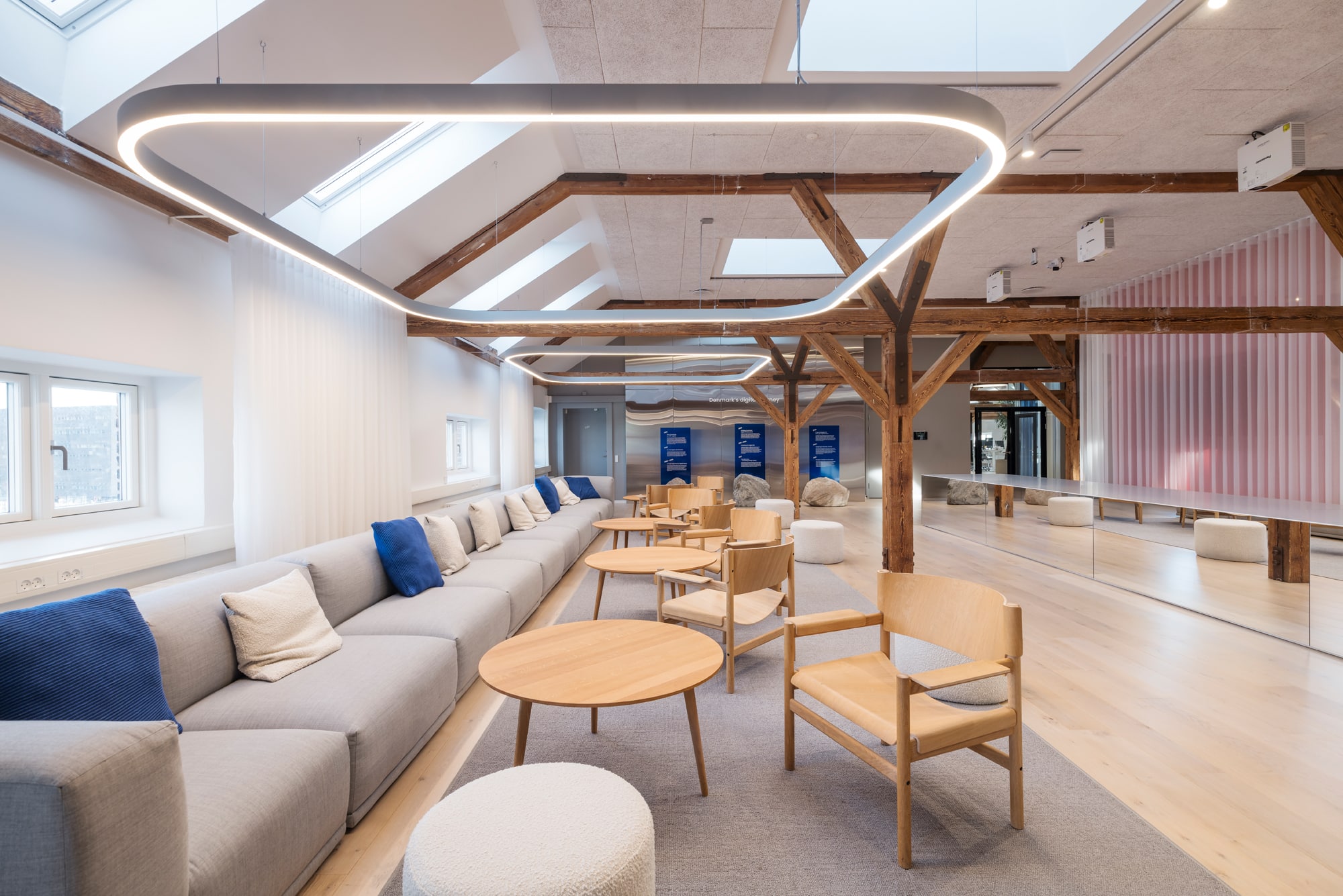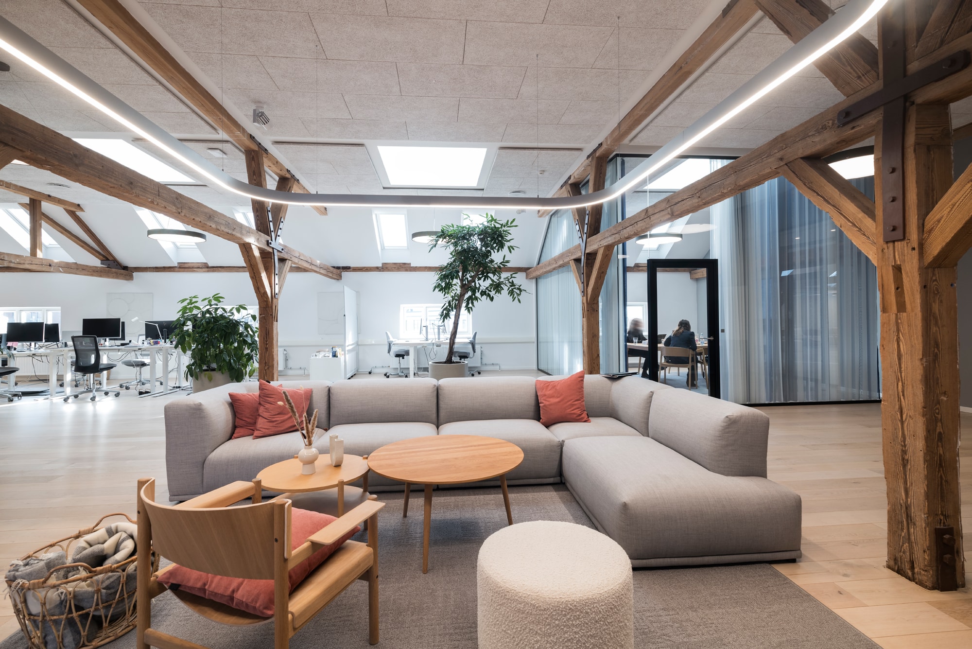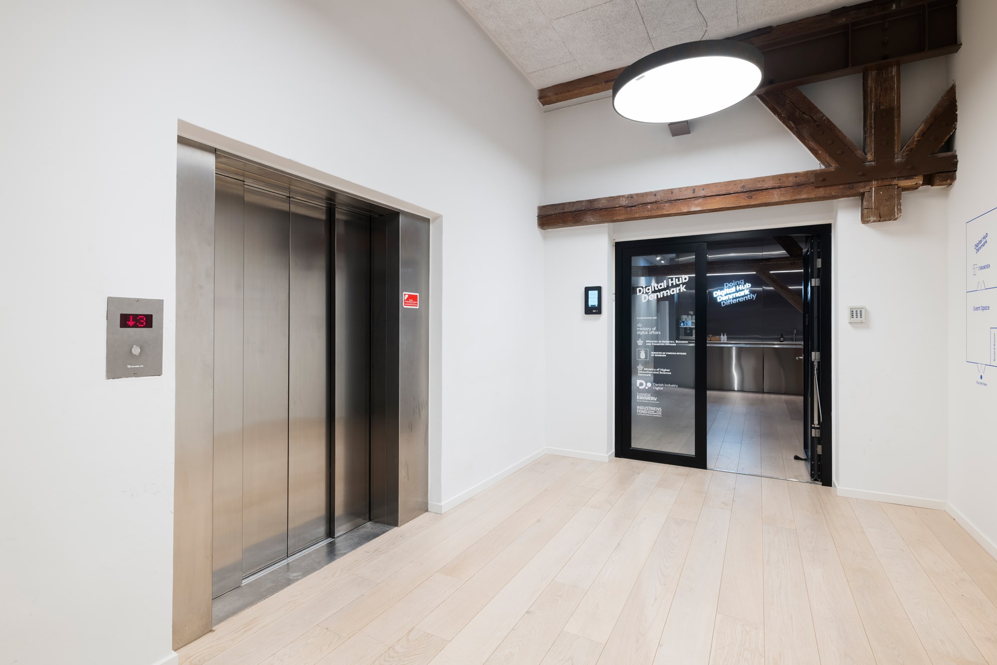 The lease on the third floor is 1,420 m² and present an exclusive warehouse style with wooden floors, exposed beams, acoustic ceilings, and raw steel details. From the premises, there is a magnificent view over Copenhagen Harbour and towards the city.