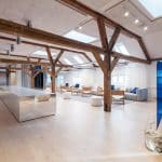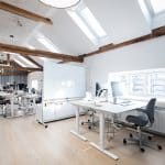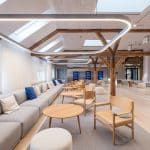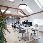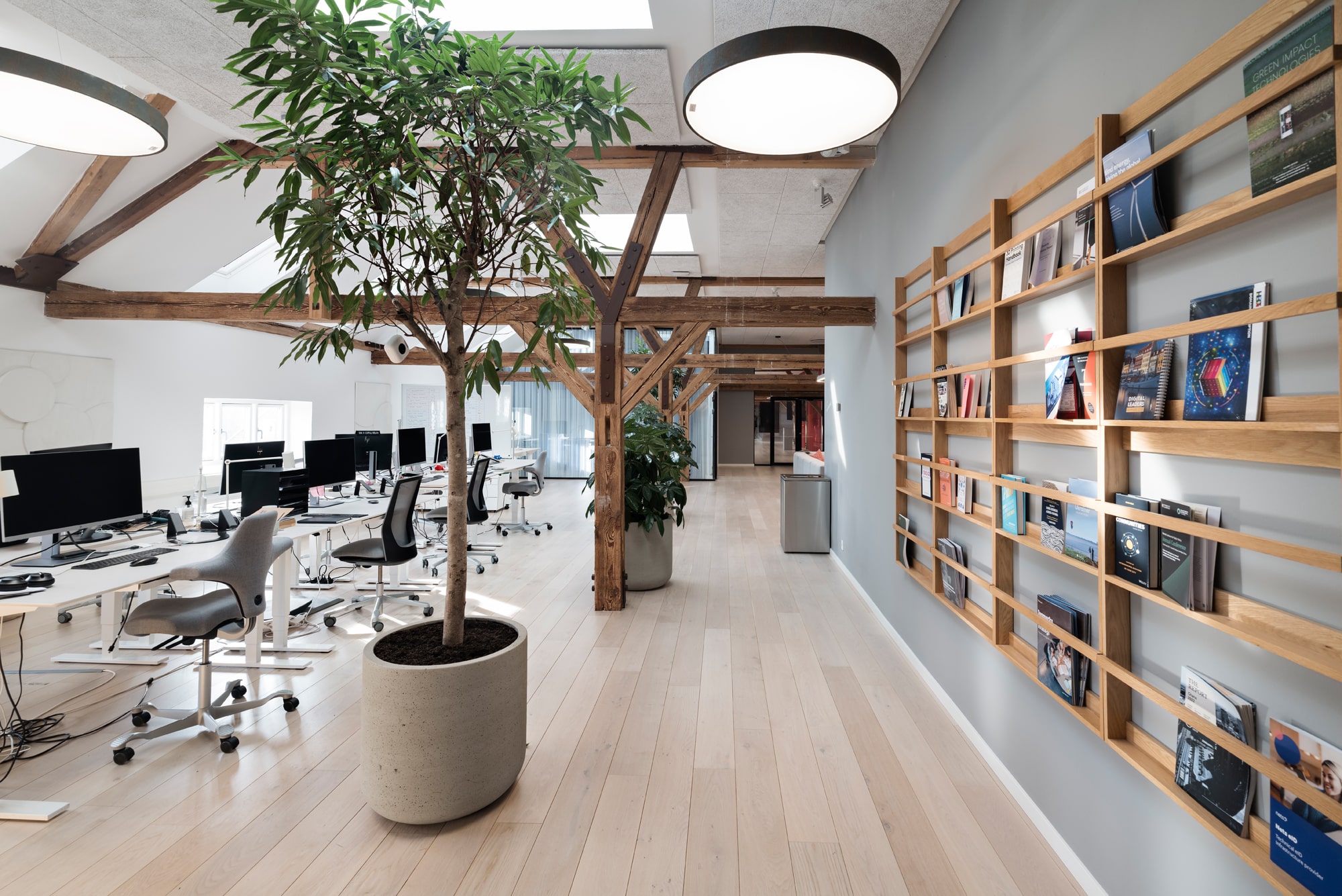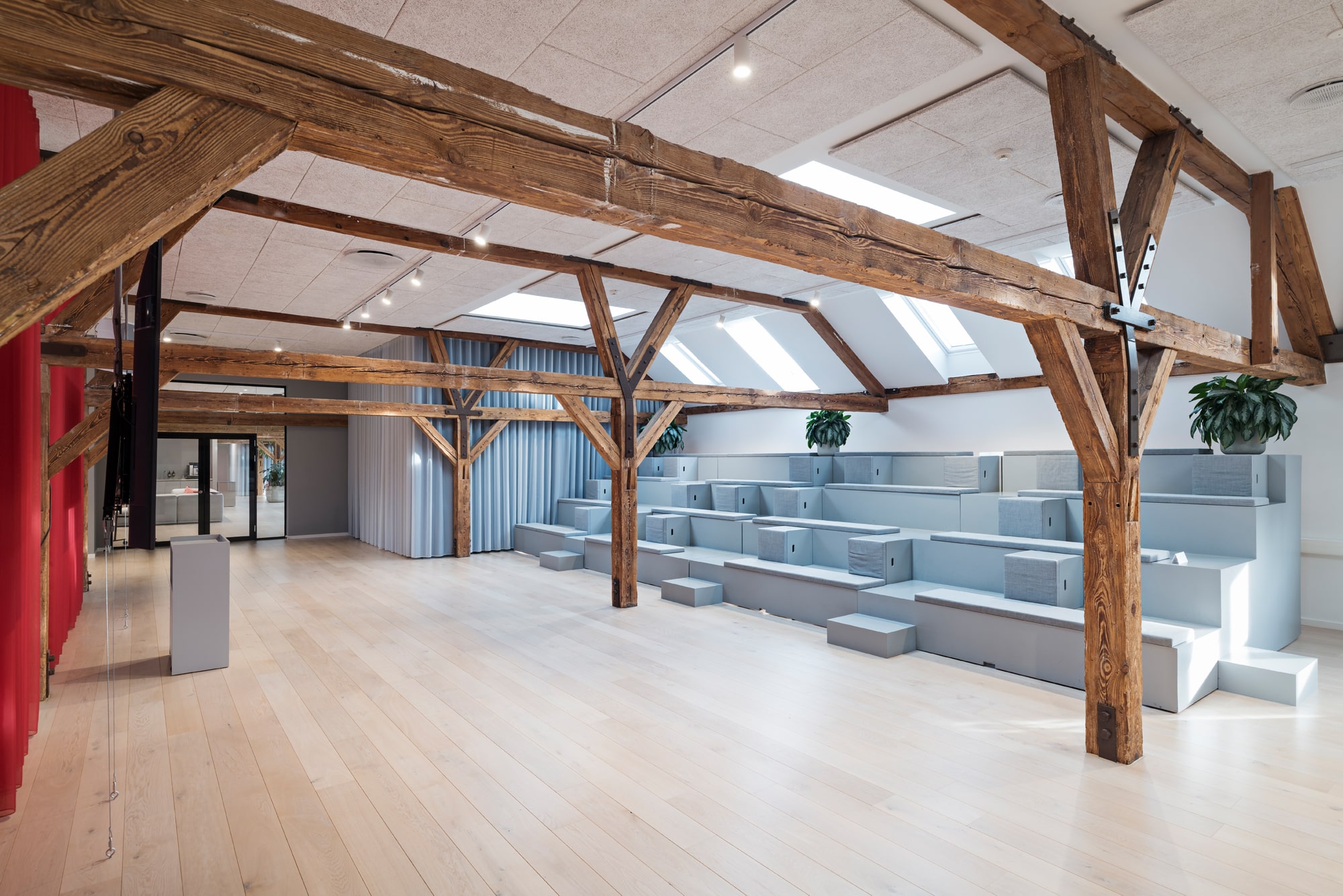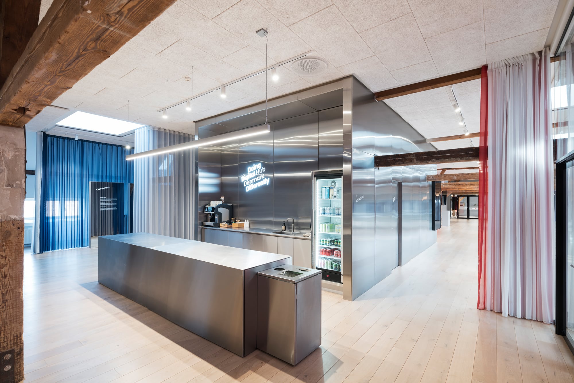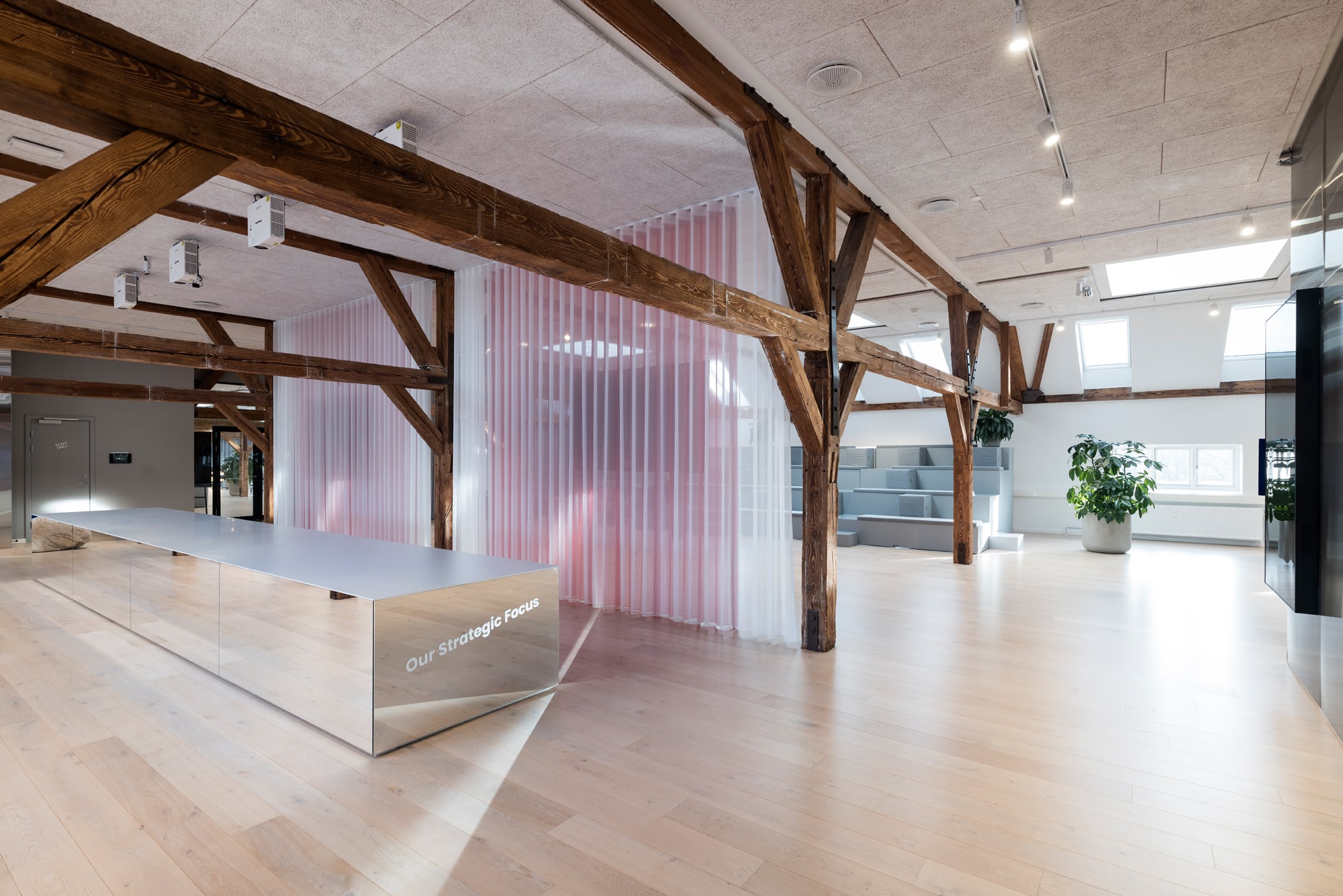 The lease on the third floor is 1,420 m² and present an exclusive warehouse style with wooden floors, exposed beams, acoustic ceilings, and raw steel details. From the premises, there is a magnificent view over Copenhagen Harbour and towards the city.