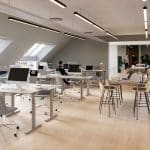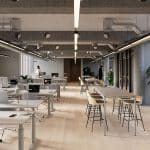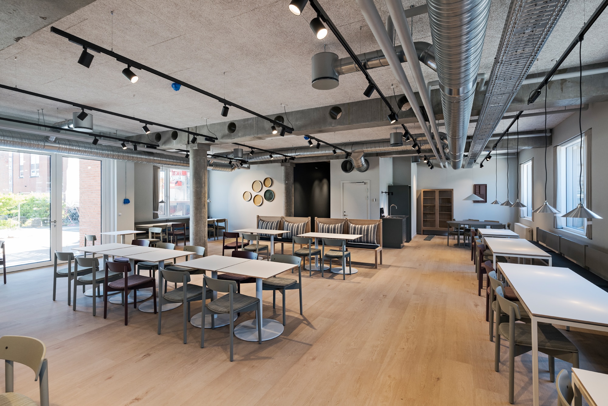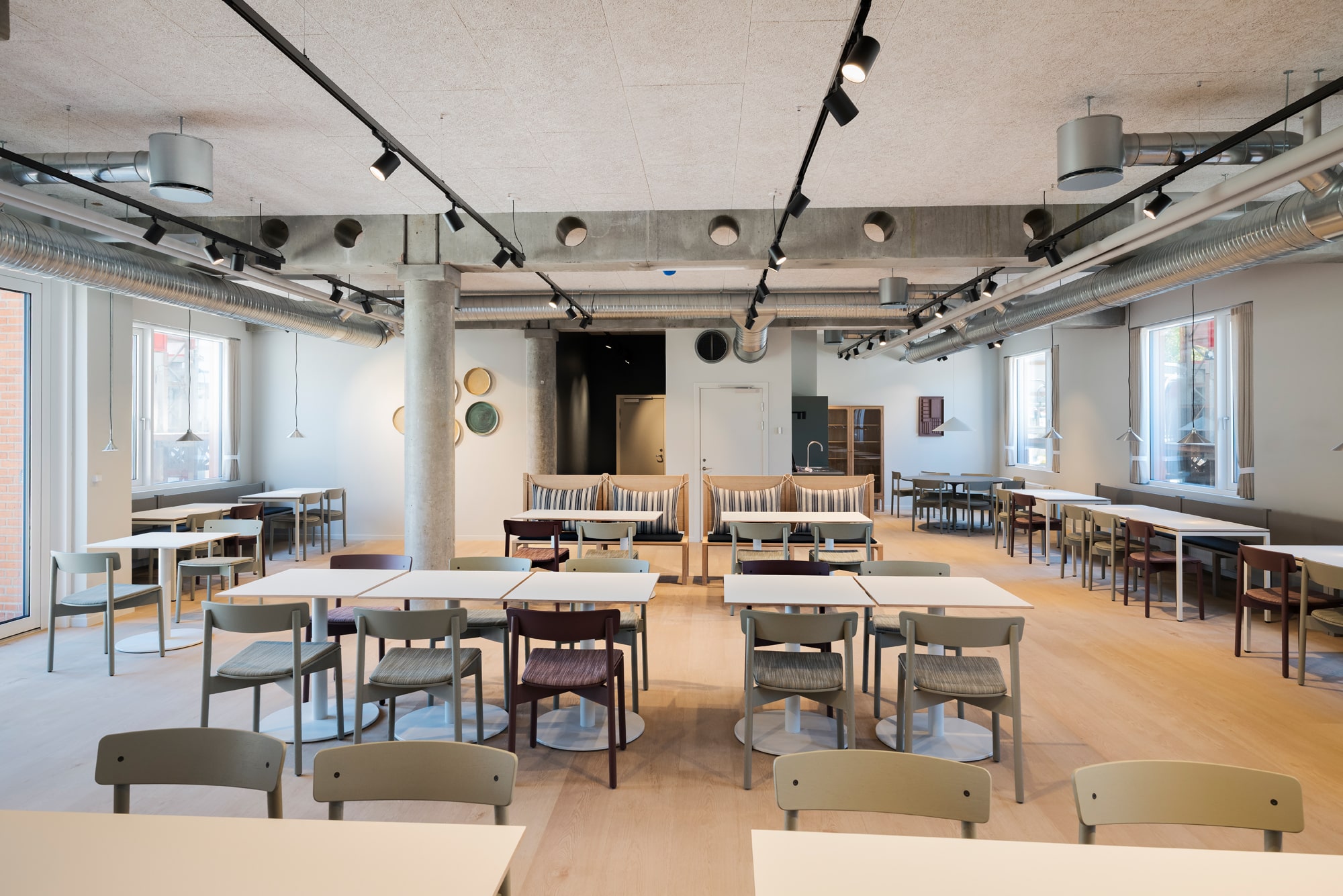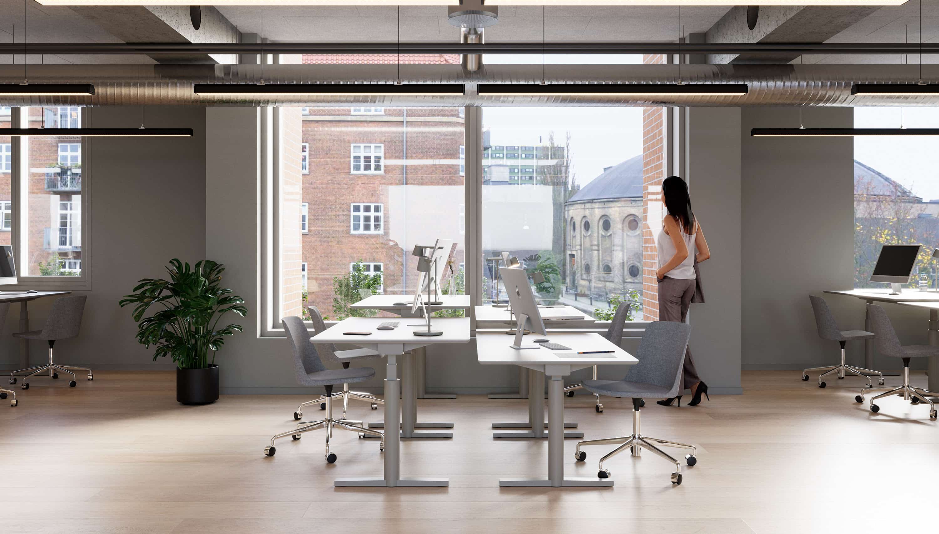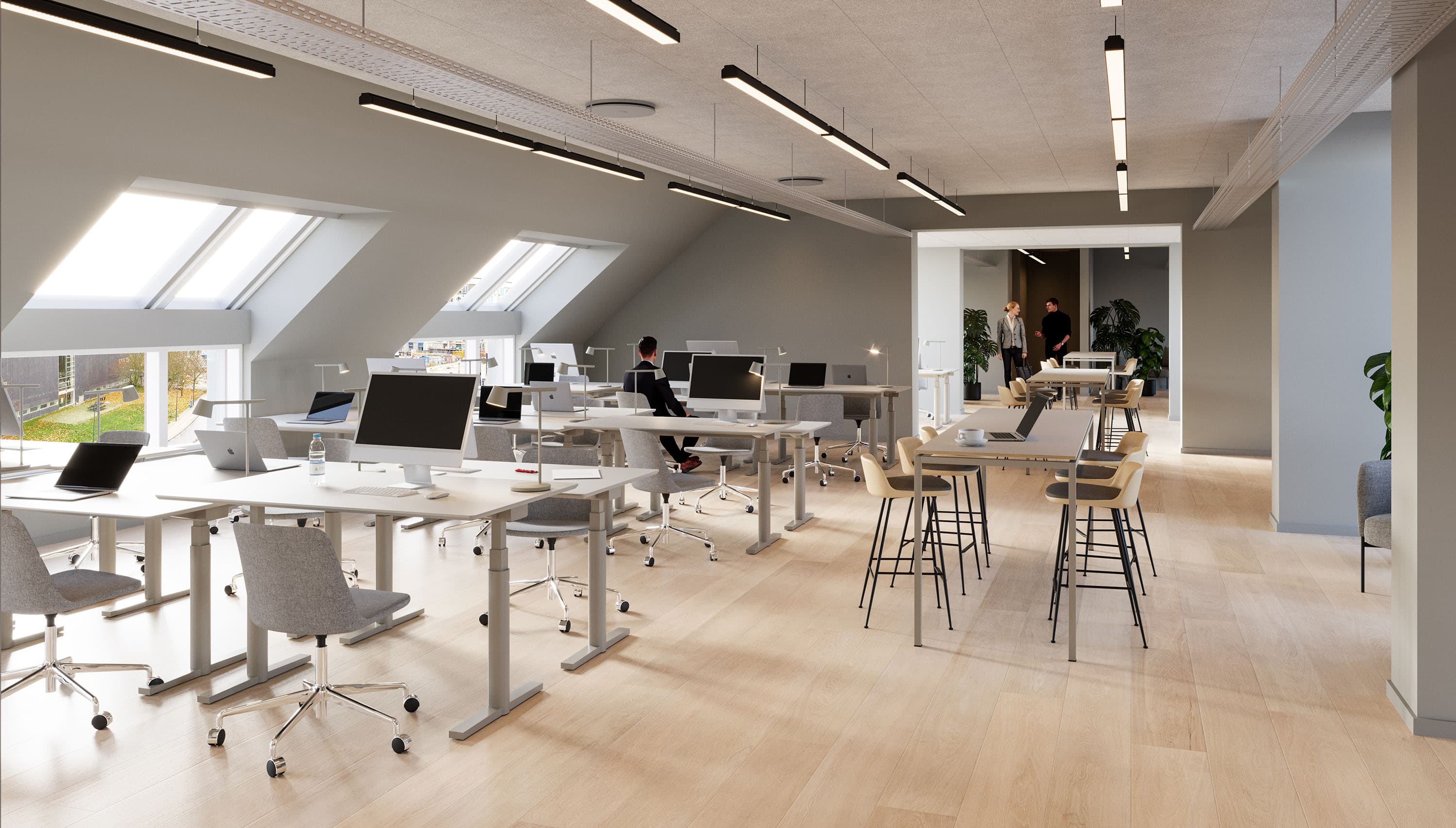 The vacant leases are approximately 540 m² per floor and can be efficiently designed to accommodate up to 46 workstations per floor. Acoustics and indoor climate are excellent, with Troldtekt ceilings, ventilation, and cooling. Exposed concrete columns and visible piping add character to the offices.